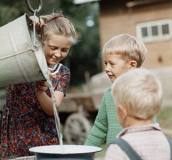 Детство в деревне на речке. Замечательное было врeмя, без забот и пpoблем. На самом деле, в воде могли сидеть буквально часами. Вытащить могла только мама, которая настойчиво звала на обед. Но летом можно и без обеда. Всегда была возможность купить хлеба с кефиром и пообедать прямо на берегу.