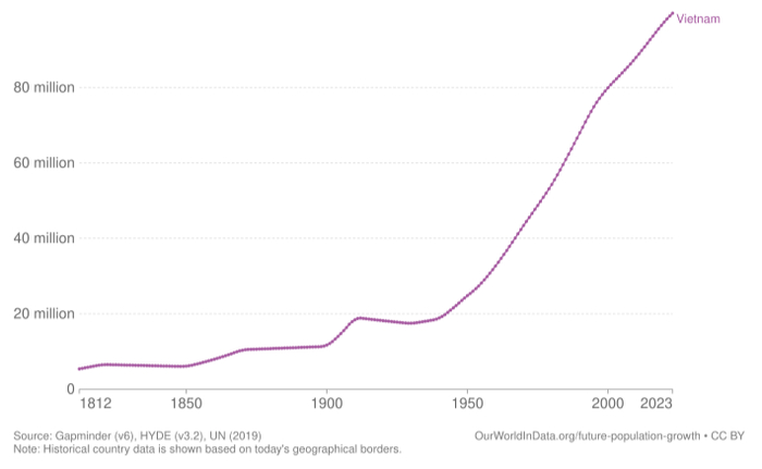 Ну и последний факт. Вьетнамцы одна из немногих наций в мире, которая смогла показать просто фантастический рост народонаселения. Судите сами.