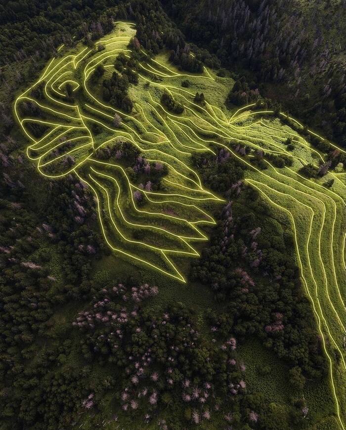 Сахалинский видеограф Сергей Любаченко снял с воздуха загадочные рисунки, явно рукотворные. Люди с больной большой фантазией могут разглядеть в очертаниях рыбку или дракона. Источник: t.me/go_sakhalin/6883