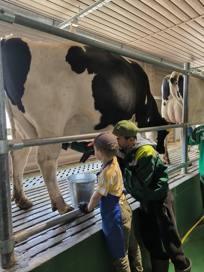 У меня эмоции через край, не помню настолько хорошо организованных экскурсий, было продумано все, даже отдельный вход в автобус для участников с коляской, где лежал новорожденный, лифты, перчатки разных размеров для дойки, фотозоны, активности детям пока взрослые затапливаются в магазине или слушают информацию гида. 2 часа на одном дыхании.