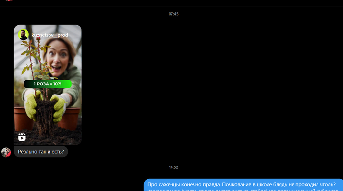 • А вот про "Пригибаешь стебель к земле — растение думает, что погибает, и выдаёт двойную силу роста" сильно улыбнуло, канешн. Ага, растение думает что погибает. Если склонить голову к нему и прислушаться можно даже услышать как бедное погибающее растение зовёт на помощь, блядь. А ещё можно позвонить растению в телеге, представиться майором ФСБ и развести на то, чтоб оно всю свою "силу роста" перевело на безопасный крипто-кошелек. Растение ж тупое, ты его к земле пригнул, а оно уже вопит "УБИВАЮТЬЬЬЬ, НЕЛЮДИ", неправда ли?!