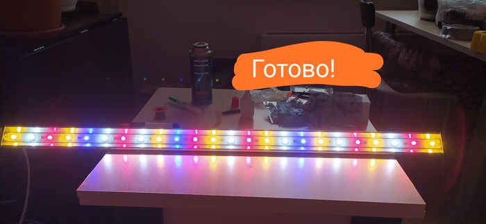 Далее я собрал светодиодную лампу со своим, проверенным спектром.