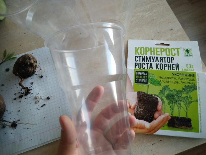 Авокадо очень быстро растит корни-поэтому горшок можно сразу большой брать. Конкретно эти косточки - для продажи, поэтому рассаживаю их по пластиковым стаканчикам объемом 0,5 л. Немного стимулятора для роста корней-порошок добавляю в воду для полива.