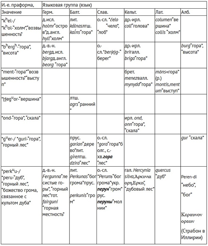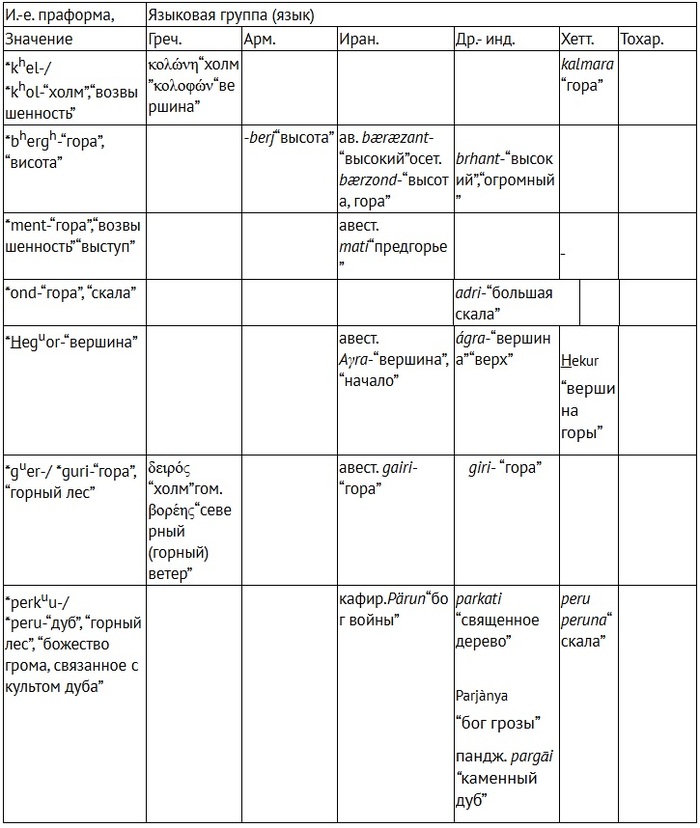 Названия, связываемые с горным ландшафтом в и.-е. языках (Гамкрелидзе, Иванов, Индоевропейский язык и индоевропейцы)