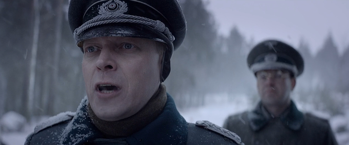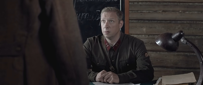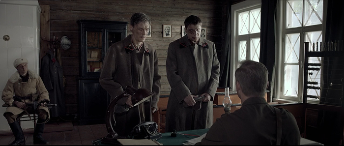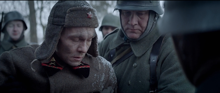 Ярмольник же за кадром рассказывает, что через половину суток, Шухов с Никитиным вышли к своим, где их сначала накормили, напоили чаем, угостили табачком, а потом за ними пришли трое злобных НКВД-шников и потащили в особый отдел. Как же мне меня уже достали, эти злобные НКВД-шники, чуть ли не в каждом российском фильме о войне. Наши сценаристами с режиссёрами, настолько импотенты, что больше не состоянии ничего кроме них показать?