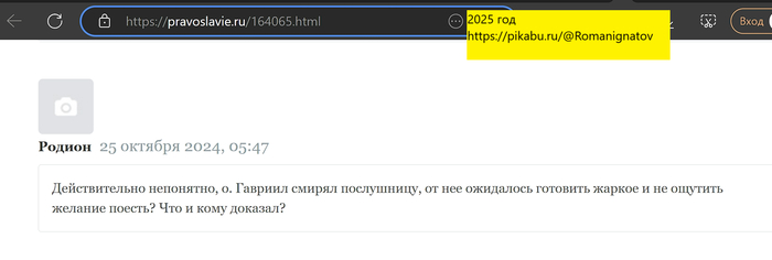 Родион: Действительно непонятно, о. Гавриил смирял послушницу, от нее ожидалось готовить жаркое и не ощутить желание поесть? Что и кому доказал?