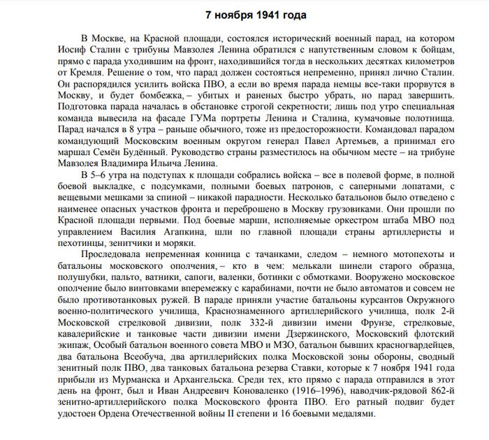 Звучит мелодия "Священная война" и нам демонстрируют документальные кадры с того самого исторического парада 7 ноября 1941 года, куда очень неумело так вставили Шухова с товарищем. Ярмольник говорит, что на трибуне мавзолея, среди стоящих там людей, Шухов распознал только товарища Сталина и Будённого.