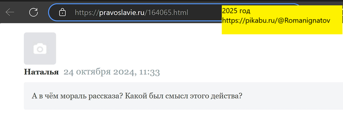 Наталья: А в чём мораль рассказа? Какой был смысл этого действа?