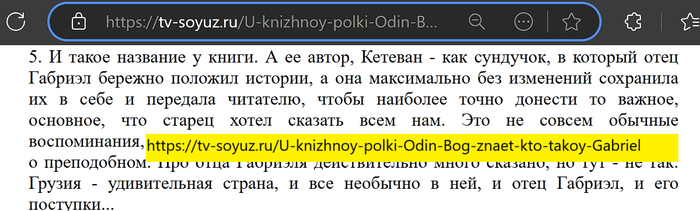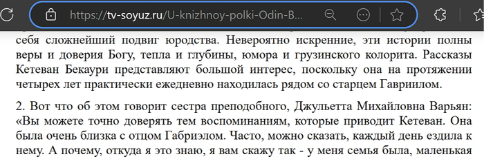 8. Эта книга воспоминаний об отце Гаврииле вышла на русском языке раньше, чем на грузинском. Над ее правкой и изданием по благословению митрополита Тихона (Шевкунова) работали иеромонах Матфей (Самохин) и его коллеги. Работали, по словам автора, интеллектуалы. Все сделано наилучшим образом.