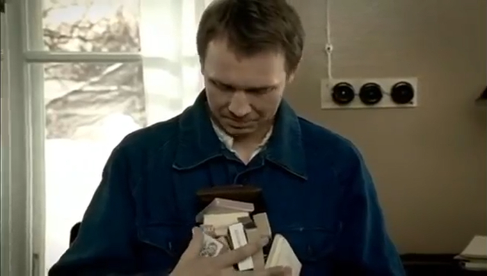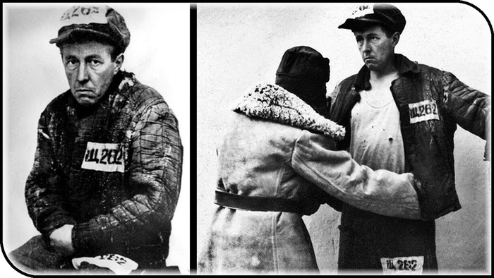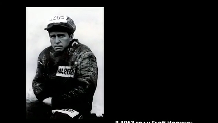 Потом Певцов одевается, после чего его ведут фотографироваться, мимо него зловеще цокая ртом, проводят его коллегу дипломата, арестованного видимо в одно время с Певцовым. Пока делают снимки Певцова в фас и профиль, нас переносят в шарашку.