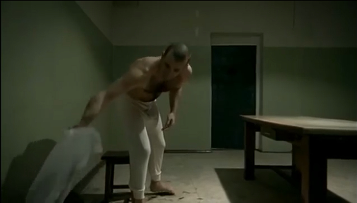 По команде Певцов медленно раздевается, тюремщик производит осмотр. Зрителям же опять демонстрируют голую жопу Певцова, видимо режиссеру одного раза показалось мало, он решил это еще раз повторить. После осмотра самого Певцова, тюремщик начинает осматривать его вещи, проверяя одежду на скрытые тайники.