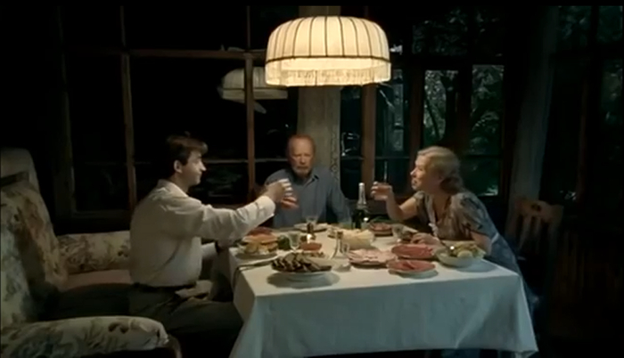 Женщина услышав такие слова, смущается и уходит. Дядя чокается с племянником и говорит, что бы он не обижался. Певцов говорит, что он не обижается, потому что и так все это знает, он ведь мамины письма читал. Оказывается мама Володина, всю свою жизнь любила другого человека, а мужа терпела, что бы сыну не портить карьеру.