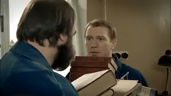 Тут же Миронов, втирает майору Шикину про Есенина, приплетая сюда к тому же и Даля, который оказывается тоже был запрещен. Миронов таки добивается своего, книгу ему возвращают, но при этом майор говорит, что книгу ему он вывезти из шарашки не даст. С книгой под мышкой, Миронов заявляется в звуковую лабораторию к Симочке, и просит принять на сохранение те записи что он делал в шарашке.
