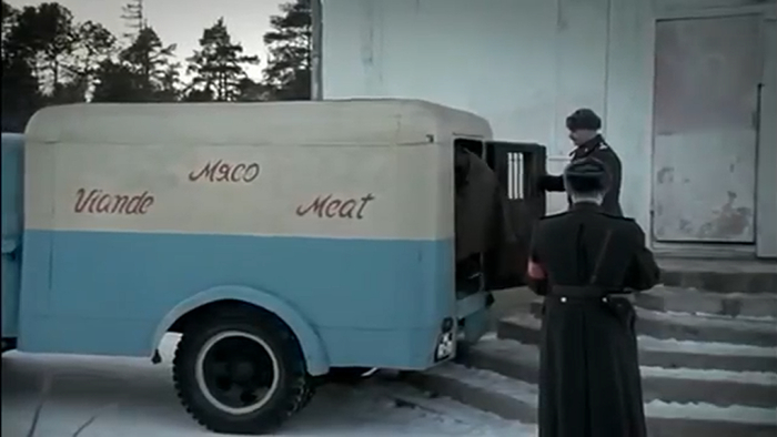 Нам же под зловещую музыку, демонстрируют спящего товарища Сталина, который кровожадно так храпит. После чего нас переносят в шарашку, где Миронов собирает свои вещи готовясь к отправке по этапу.