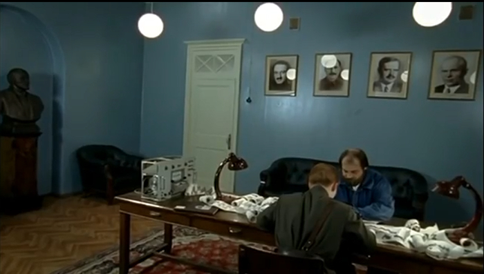 Скляр протирает очки, опять смотрит по сторонам, вновь видит сидящую на стуле Инну Чурикову, после чего говорит, что он этой проблемой не может заняться. Действительно, зачем "кровавому режиму" такие фотоаппараты, пускай лучше такая техника будет только у "продвинутых демократических европейских странах".