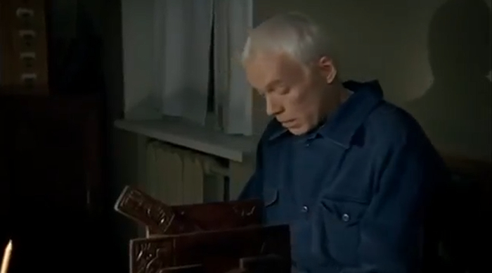 История повторяется, в углу за шкафом появляется женщина, которая начинает зачитывать текст письма, из которого мы узнаем про смерть бабушку, которую из за отсутствия денег похоронили в ближайшей канаве, а так же другие ужасы. Сцены эти с чтением писем смотрятся как наркоманский приход какой-то, потому что сам мужик ПИСЬМА не читает, он все время пялится в угол, где ему мерещится типа как призрак жены, зачитывающий ему всякие ужасы. Кстати, если Потапов письмо не читал, а пялился в угол, откуда тогда он знает содержание письма?