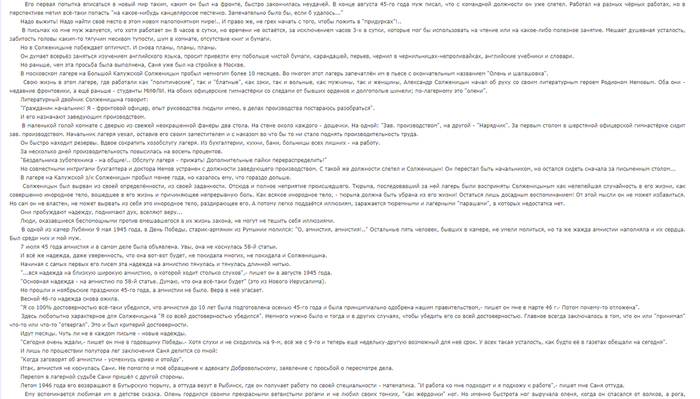 Или у Солженицына было привилегированное положение в шарашке, раз он регулярно получал письма от жены?
