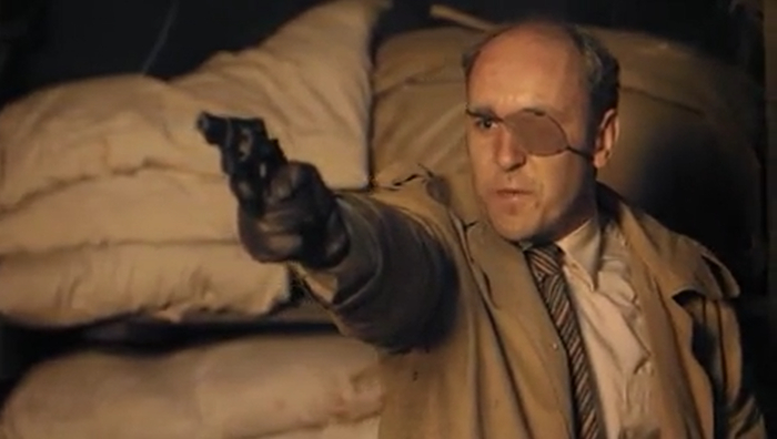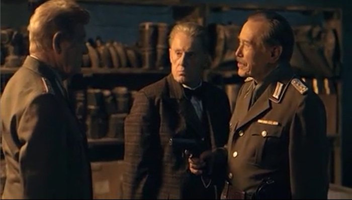 Возвращаемся к этому эпичному фильму. Только Ригнер заходит к себе в комнату, как к нему врывается Брюкнер, наставляя на него пистолет. Брюкер требует, что бы ему назвали координаты места, где спрятана янтарная комната.
