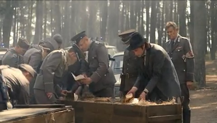 Тут подъезжают поляки с немецкими коллегами, которые из подвала начинают вытаскивать ящики. Естественно, Брюкнер из всей этой потасовки выходит живым, потому что умеет телепортироваться, да и вообще, авторы сценария его фанаты. Пока поляки вскрывают ящики, Брюкнер успевает скрыться в лесу.