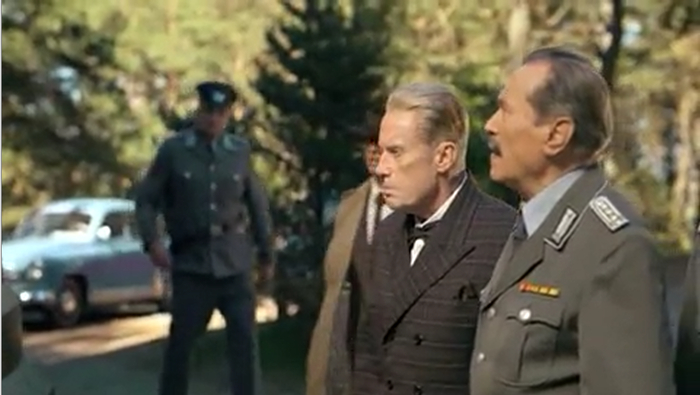 Далее происходит грандиозная перестрелка. Клосс, Брюкнер, Неонацисты, замаскировавшиеся под агентов Штази. Все гоняются друг за другом по кругу и стреляют из всего что есть под рукой, Ганс разживается автоматом. В какой-то момент нацист кричит Клоссу: «Сдохни, проклятый большевик». Клосс кричит в ответ: «Я не большевик, я поляк». Как будто бы, одно другому мешает.