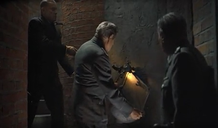 Даниель с Гансом заходят в помещение где стоят ящики, Брюкнер испаряется в неизвестном направление. Даниель с Гансом зажигают в помещение свет, благо там на стеллажах, стоят керосиновые лампы, после чего пытаются вскрыть один ящик. Тут у них за спиной материализуется Брюкнер и наставляет на Ганса пистолет, после чего говорит, что он раскусил фальшивого Ганса по почерку.
