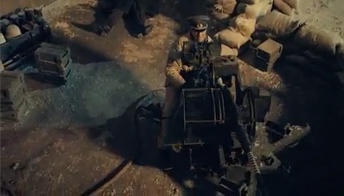 Ганс не таясь выходит со склада, убивает из пистолетов зенитный расчет, неспеша подтаскивает к пулемету коробки с патронами, после чего убивает еще одного немца, получает пулю в ногу по касательной, разворачивает пулемёт на прямую наводку.