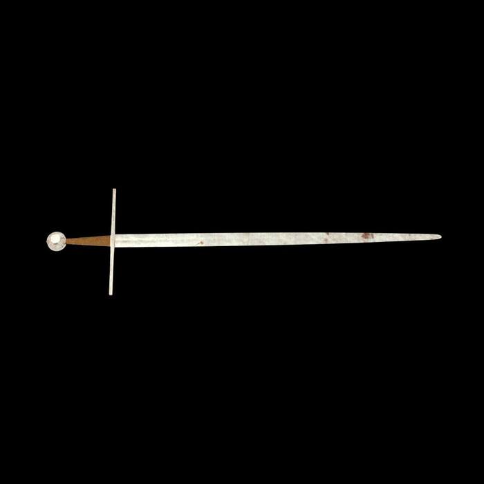 Меч, изначально покрытый толстым слоем песка и ракушек после веков пребывания под водой, был найден у берегов Израиля в 2021 году и изучен с помощью рентгеновских снимков, не нарушая защитный слой конкреции. Этот слой замедлил процесс окисления и предотвратил разрушение оружия. Длина меча составляет примерно 89 см, а ширина клинка - около 4,6 см. Он был найден без ножен, что предполагает, что оружие могло упасть в море во время морского сражения. Возраст меча составил около 800 лет, что соответствует XII–XIII векам