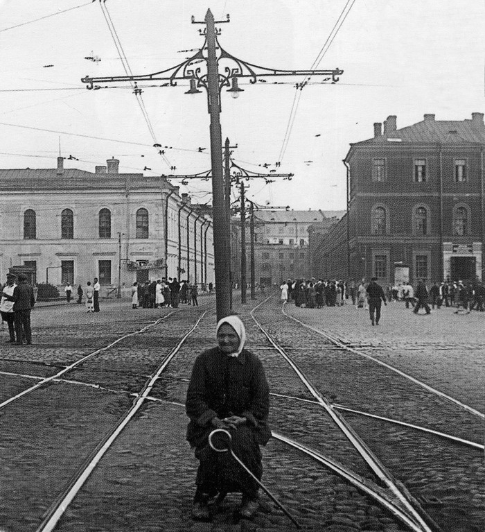 Стрелочница на площади Труда. Ленинград, 1937 год. На оживлённых перекрёстках городов в начале XX века можно было увидеть работу стрелочников — людей, обеспечивавших движение трамваев вручную. При приближении к развилке трамвай громко сигналил, предупреждая стрелочника. Тот по цветным огонькам на верхней табличке определял, по какому маршруту следует состав, и вручную, с помощью лома, переводил стрелки, обеспечивая правильное направление движения. Этот простой, но важный труд был частью повседневной жизни города, когда железная дорога ещё не знала автоматизации, а всё решал человеческий глаз, навык и оперативность.