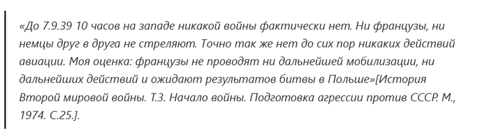 «9 сентября, вечер. Враг оказывает сопротивление на всей линии фронта. Отмечено несколько контратак местного характера с его стороны. Блестящее наступление одной из наших дивизий обеспечило нам занятие важной складки местности»[Военные действия между Германией и Францией // Правда. 11 сентября 1939. №252 (7937). С.5.].