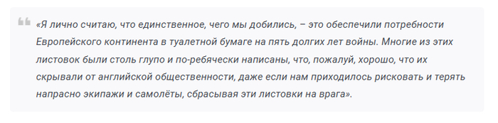 Всего же с 3 по 27 сентября только английские ВВС обрушили на головы немецких обывателей 18 млн листовок. Как самокритично заметил маршал авиации Артур Харрис, позднее прославившийся ковровыми бомбардировками немецких городов: