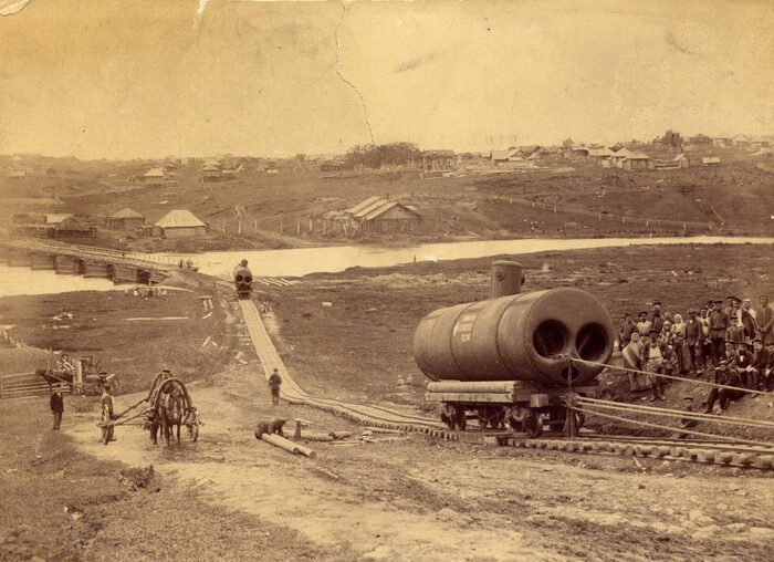 Перевоз паровых котлов через Турью, конец XIX-начало ХХ в.в. Фотография Н.К. Ляпушкина