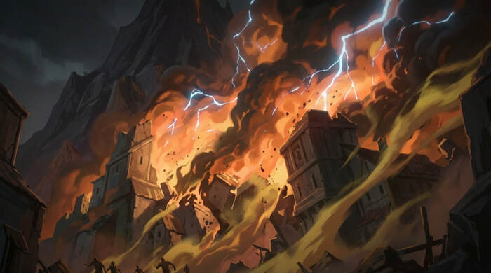 📌Взрывы: Тысячи бочек с ромом на складах взорвались одновременно, превратив руины в огненный ад. Море в гавани закипело.