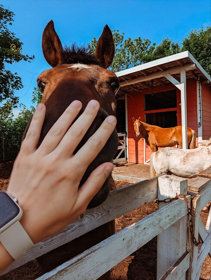 Помню, страха перед лошадьми не было вообще. Да и нечего было бояться, их интеллект весьма высок, не то, что у коровы. Лежишь, такой, в траве, а конь пасётся и на тебя идёт - не наступит никогда. Даже удивляется: ты чего, мол, разлёгся? А ты ему что-нибудь вкусное протянешь, и тот, жуя, понимающе кивает... Сказали мужики, сзади не ходить и, если уж оказался там - ни в коем случае не пугать и не трогать круп - окей, не ходил и не трогал. А в остальном.. Прекрасное животное. Были кони хитрые, были спокойные, были прям гордые личности, а были, как одна кобылица из-под телеги - полностью безвольные. Но одинаковых не было, у всех был характер.