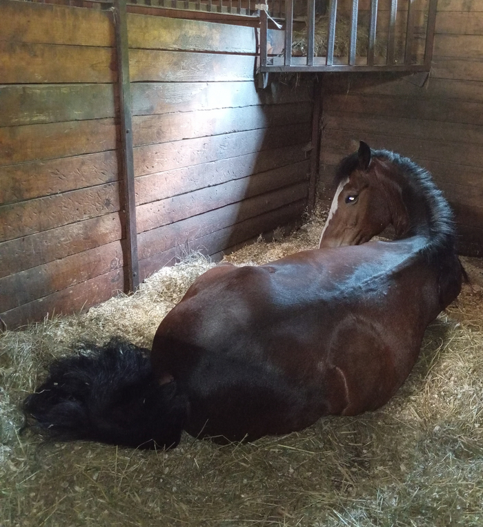 Содержим на частной конюшне, своего ветеринара у них нет, поэтому лечим сами по советам ветеринаров. Ему 3.5 месяца, всегда был бодрый, активный и любознательный.