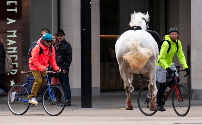 Группа из семи лошадей и шести солдат Домашней кавалерии находилась на длительных учениях в Белгравии , когда разразился хаос. Четверо военнослужащих были сброшены с лошадей, а пятеро животных вырвались на свободу.