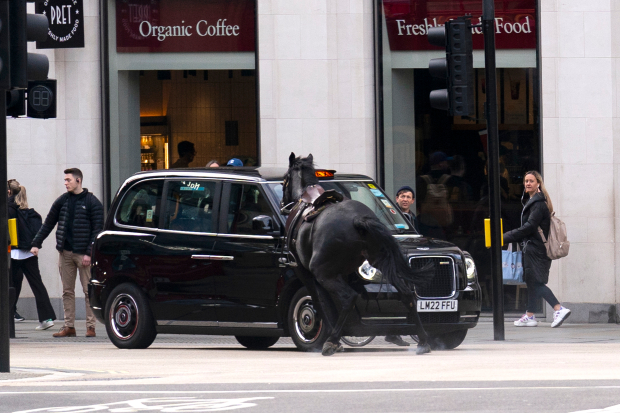 Пять кавалерийских лошадей устроили сегодня хаос в центре Лондона, напуганные строителями