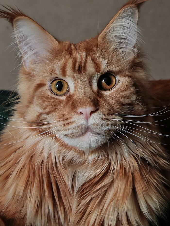 Фотореализм, высокая детализация шерсти и усов, реалистичные текстуры ткани и декора.