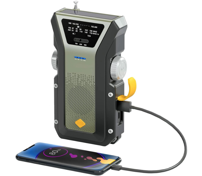 Аварийное метеорологическое радио предназначено для использования в экстренных ситуациях и автономных условиях. Поддержка диапазонов NOAA, AM и FM позволяет получать информацию о погоде и чрезвычайных предупреждениях. Наличие ручного генератора, солнечной панели и аккумулятора ёмкостью 4000 мАч делает устройство независимым от розетки.