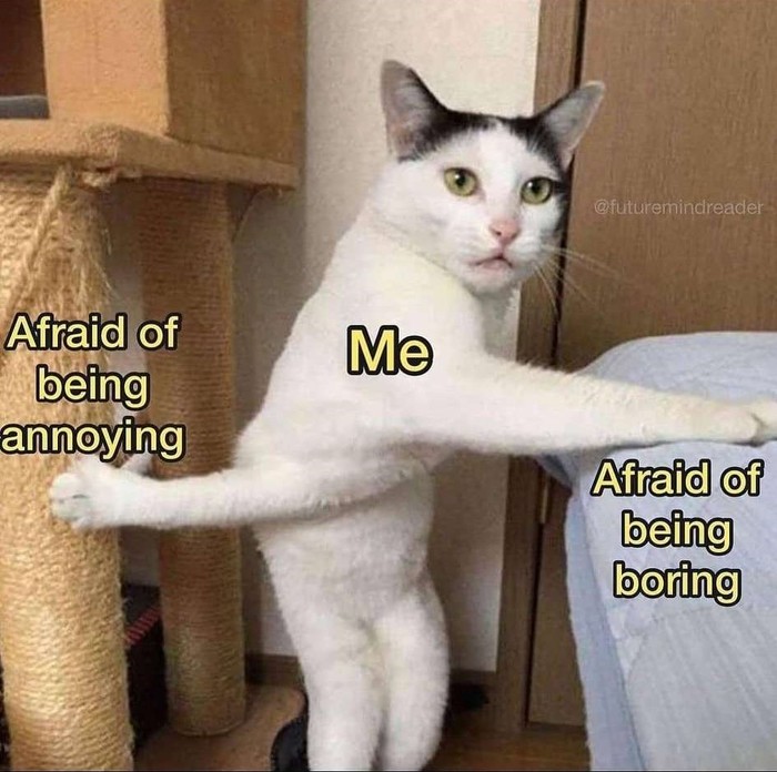 39 Romario25 Интроверты, уединяйтесь Сложный выбор интроверта 4 года назад Я пытаюсь решить с каким из моих друзей я сегодня позависаю. Интроверт Друзья Выбор Картинка с текстом Перевод Ещё 0