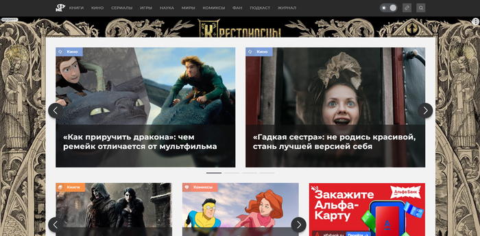 Крупнейший специализированный ресурс о фантастике во всех ее проявлениях. Издание публикует материалы о фантастических и фэнтезийных фильмах, сериалах, книгах, комиксах, играх, а также новости индустрии и культурные явления, связанные с жанром.