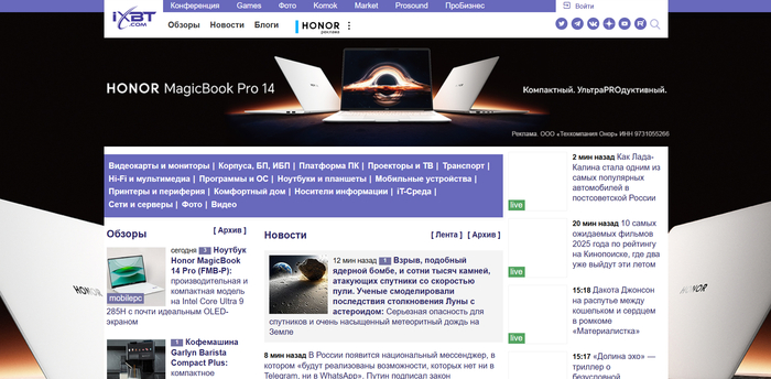 Один из старейших и авторитетнейших русскоязычных ресурсов, целиком посвященный "железу" и IT. Основные темы: глубокие обзоры процессоров, видеокарт, материнских плат, ноутбуков, смартфонов, периферии, а также софта, игр (с технической точки зрения) и новости IT-индустрии. Для публикации здесь требуются серьезные знания предмета.