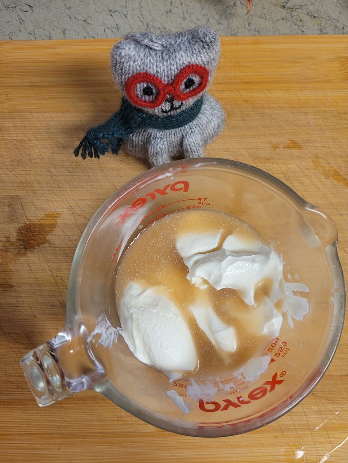Минутку покрутил в планетарке до смешивания. Вернул тесту налипшие ошметки с краев чаши.