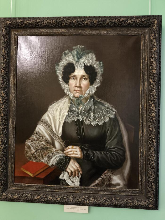 Мария Юрьевна Лермонтова в год написания портрета уже лет десять как вела хозяйство своего зятя Андрея Фёдоровича Катенина в чухломском имении Клусеево.