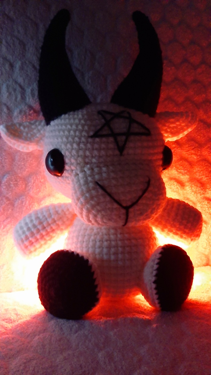 Год начался прекрасно, с заказа игрушки .Это была лёгкая,но очень красивая работа.Я сама давно очень хотела связать бафомета, но все никак руки не доходили до него. А тут заказ и именно эту игрушку, я была приятно удивлена , связала на одном дыхании. Представляю вашему вниманию - Бафомет.