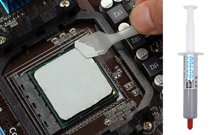 Термопаста GD900 предназначена для нанесения на процессоры ноутбуков, стационарных компьютеров, видеокарт, чипсетов как с активной, так и с пассивной системой охлаждения. Сфера применения: во всех компьютерных и электронных устройствах, где необходима высокая тепловая проходимость между источником нагревания и модулем охлаждения. Стоит шприц 15 гр. около 130 руб.Ссылка на неё