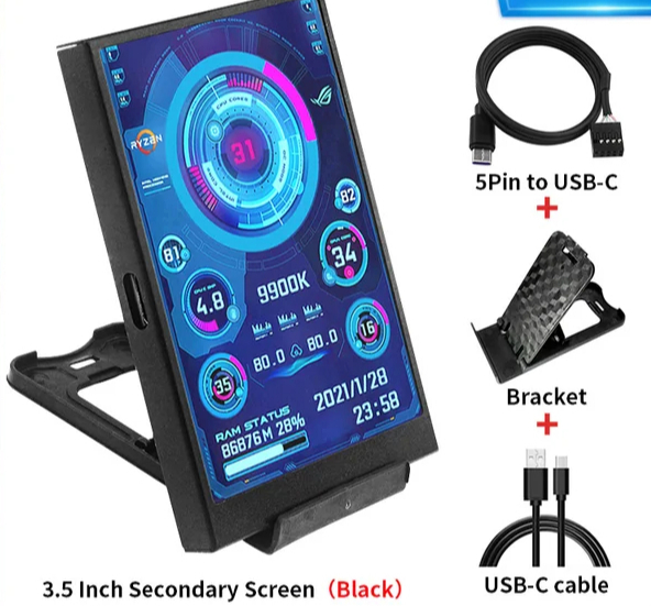 3,5-дюймовый IPS экран Caturda для отображения данных состояния компьютера. Стоит такой комплект 1300 руб. Ссылка на него