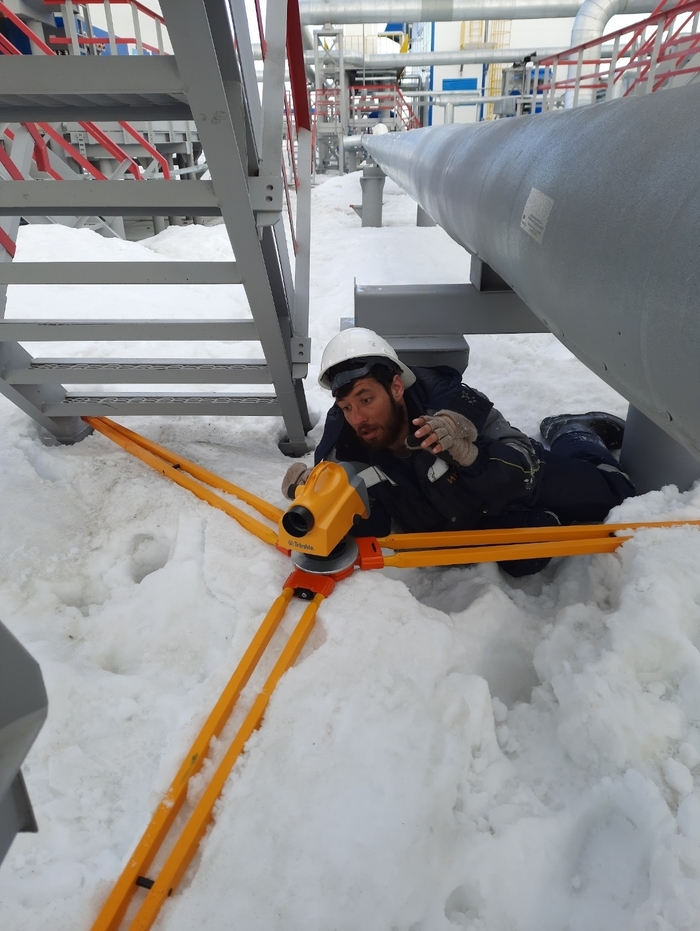 Климат конечно даёт о себе знать. Нивелировка велась по территории месторождения, преимущественно по бетонным дорогам, но приходилось и вне дорог ходить. А там только зимой по снежной корке. Нужно успеть пройти пока лежит наст прочный, по этому работали в любую погоду, отсиживались только в те дни когда прибор отказывался работать из за мороза, а отказывался он работать от -40С° и ниже.