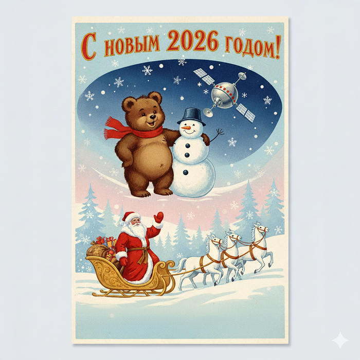 Этот промпт создаёт классическую советскую открытку, знакомую многим с детства.