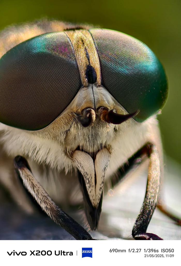 Телефон подпускает объект вплотную (2-3 см) и переключается на камеру со сверхшироким углом. Есть серьёзные минусы: искажение краёв кадра, неестественное размытие сзади, и главное, чтобы снять насекомое, нужно поднести телефон почти вплотную. Большинство букашек этого не оценит и просто улетят\убегут.