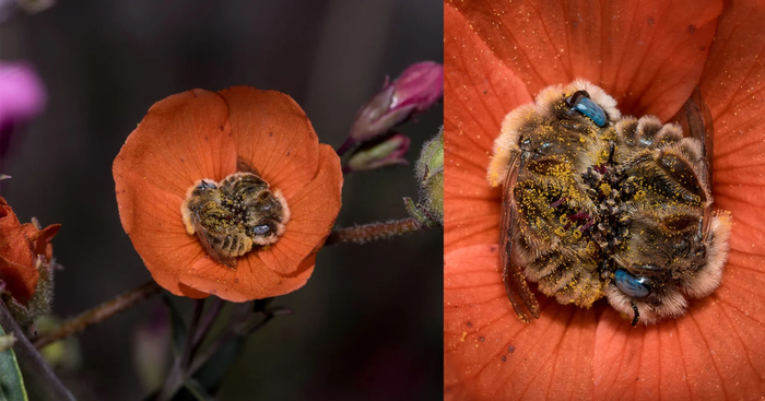 Иногда можно найти шмеля, который буквально ночует в цветке: забрался внутрь и не шевелится до утра. Это идеальная модель для макросъёмки. На закате свет тоже становится мягким и тёплым: золотой час даёт те самые золотистые цвета и все то же боковое освещение.